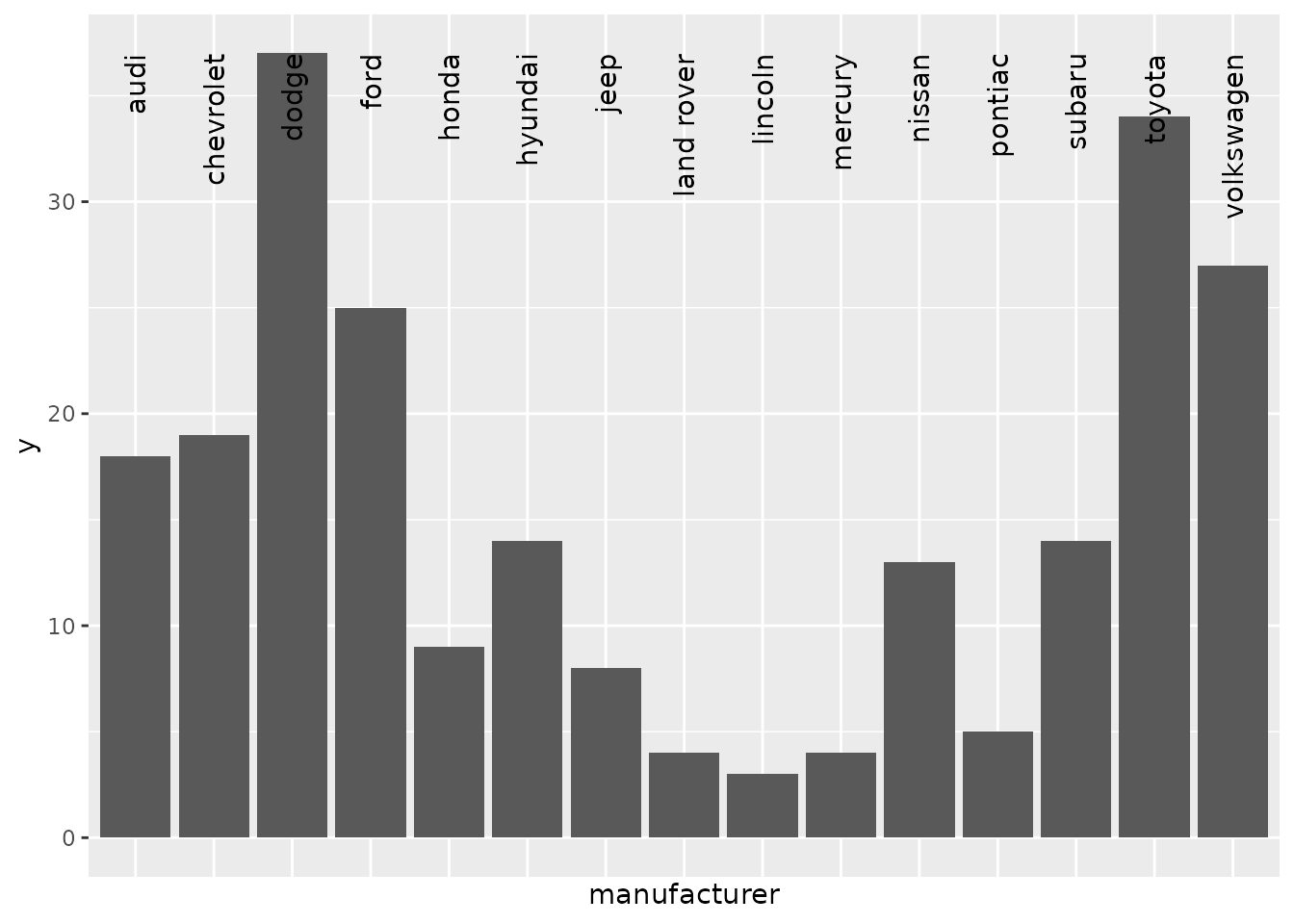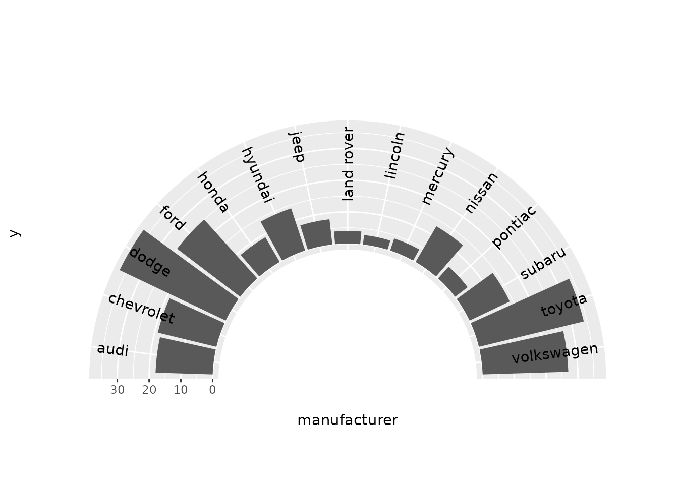 Plot p displays a Cartesian bar chart of car manufacturers.