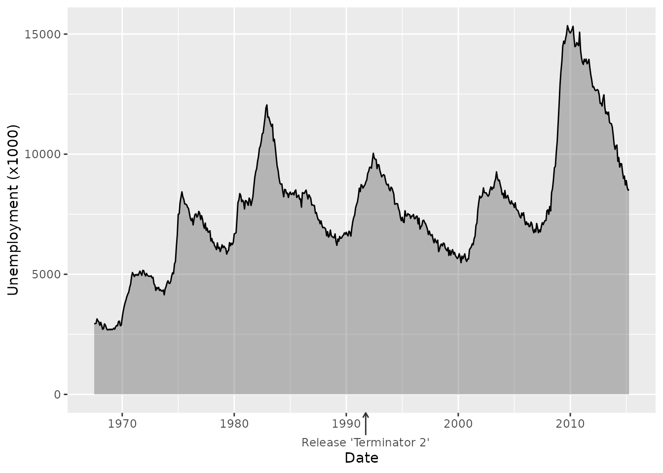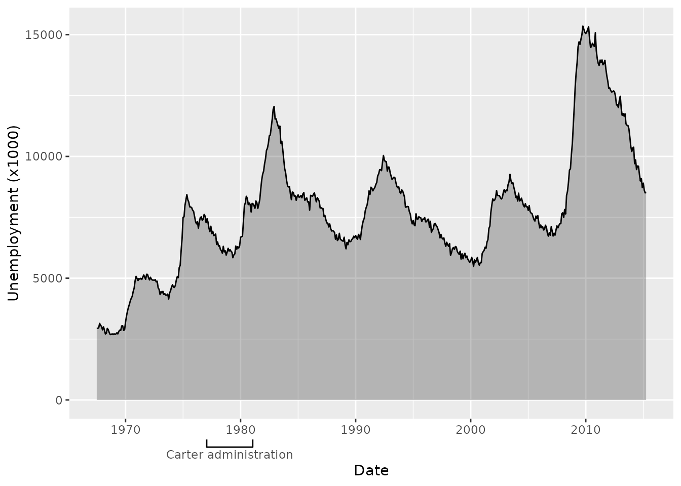 Pick some event or period in the range of the plot above. Create an axis annotation to indicate that event or period. You may need to construct the appropriate key argument for a custom guide.