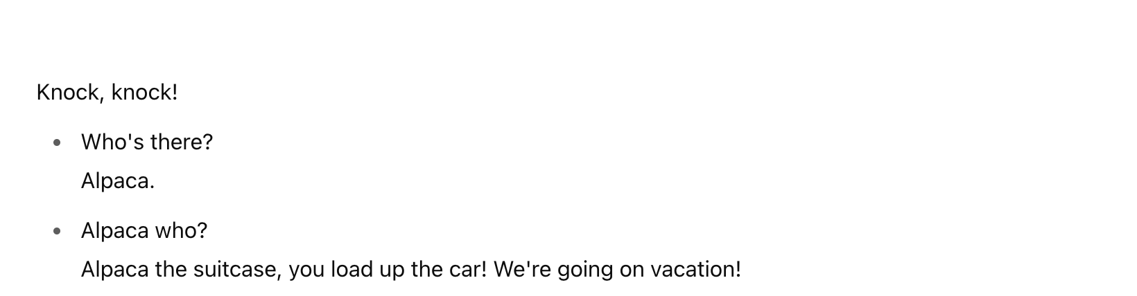 Because it always knows how to *arr-r-ive* in style!02_word-gameSet up a chat with a system prompt: