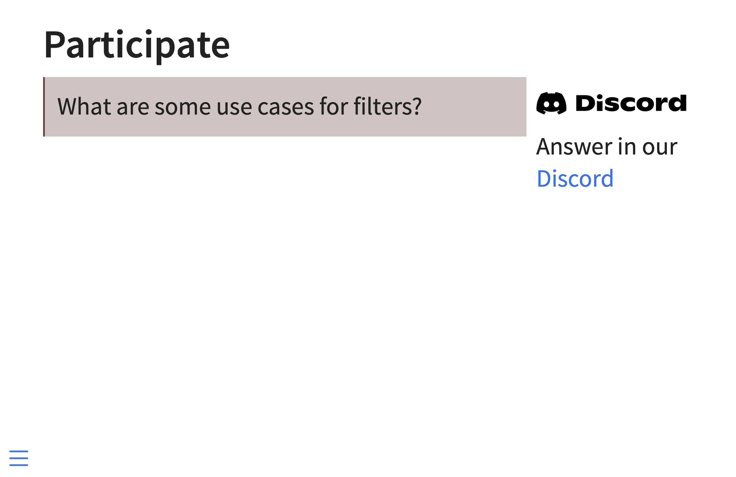With your neighbor, predict what the “Participate” slide will look like.