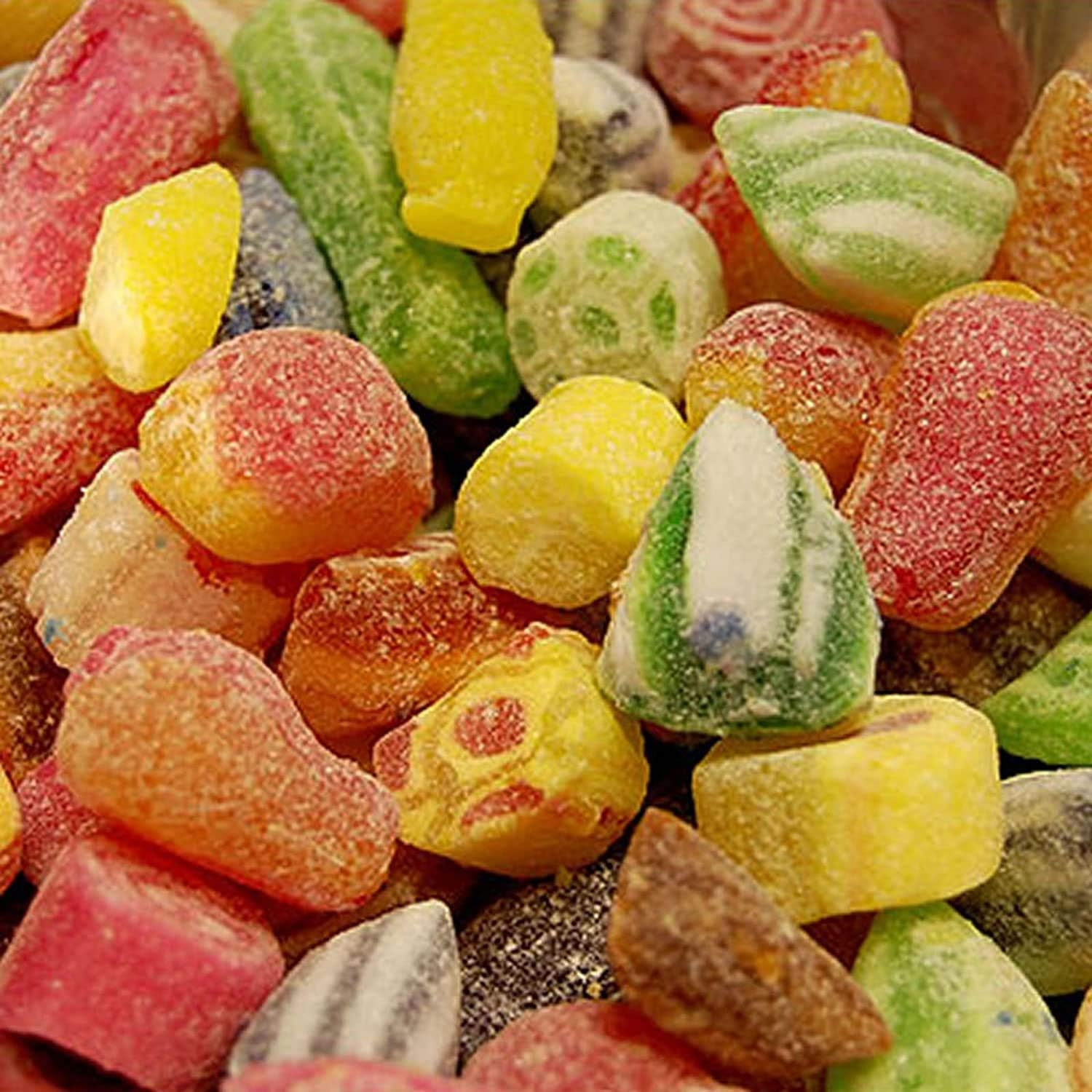 Ingredients: Sugar, glucose syrup, acid: citric acid; flavouring, colours: E102, E110, E122, E124, E133, E142.