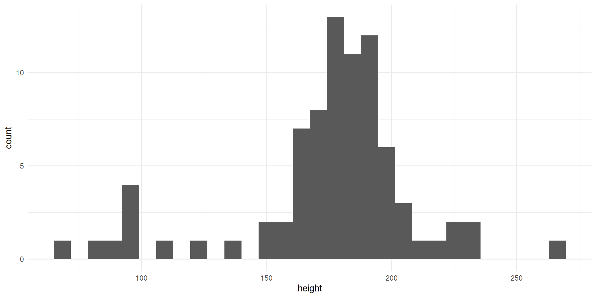 histogram(starwars, height) + theme_minimal()As is, there is no easy way to specify "steelblue".