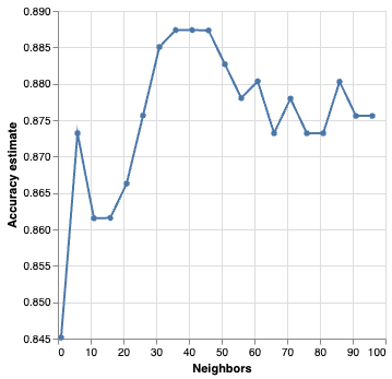 scikit-learn (cont’d)scikit-learn (cont’d)Since cross-validation helps us evaluate the accuracy of our classifier, we can use cross-validation to calculate an accuracy for each value of our parameter, here \(K\), in a reasonable range.