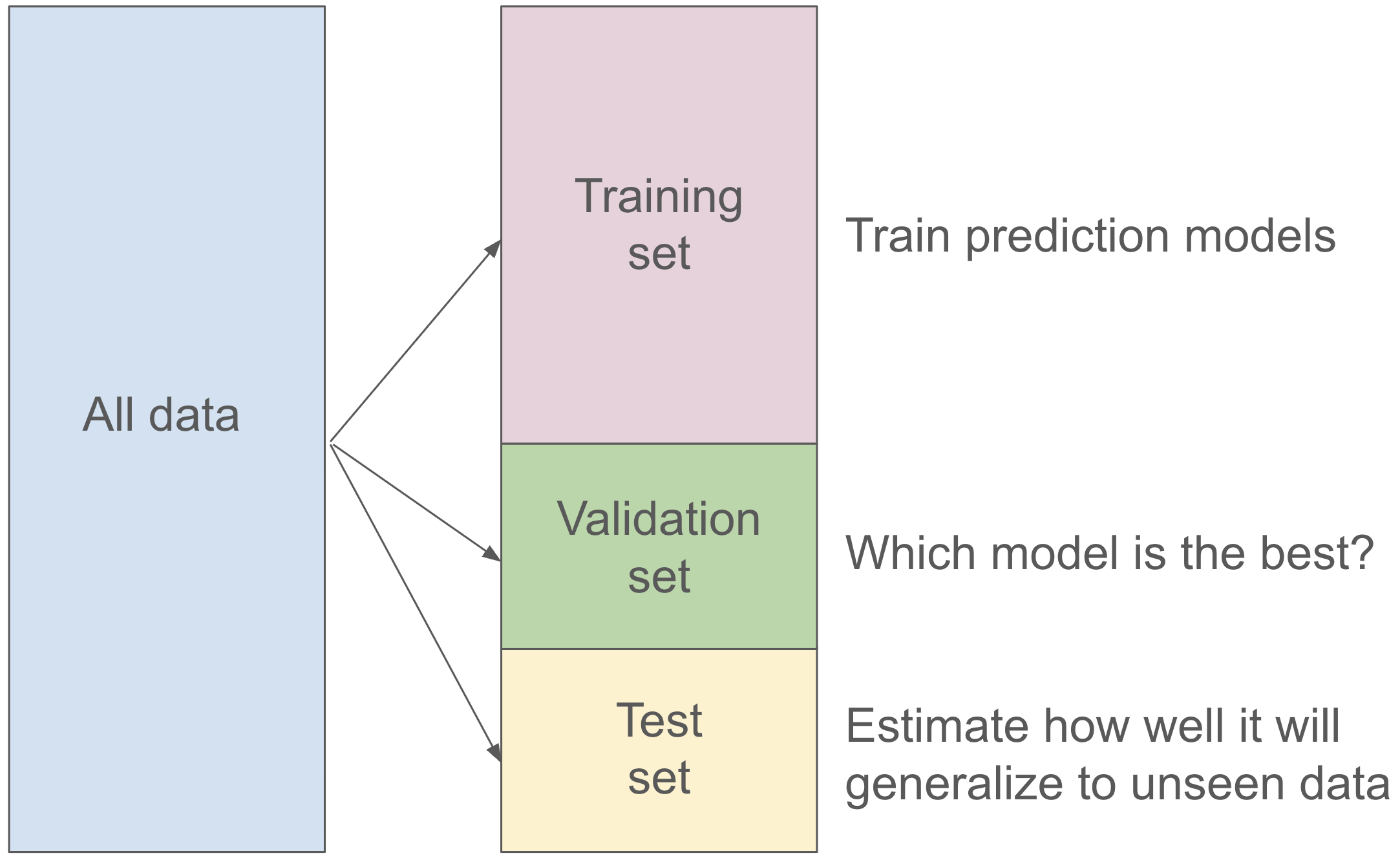 For each parameter value we want to assess, we can fit on the training set, and evaluate on the validation set.